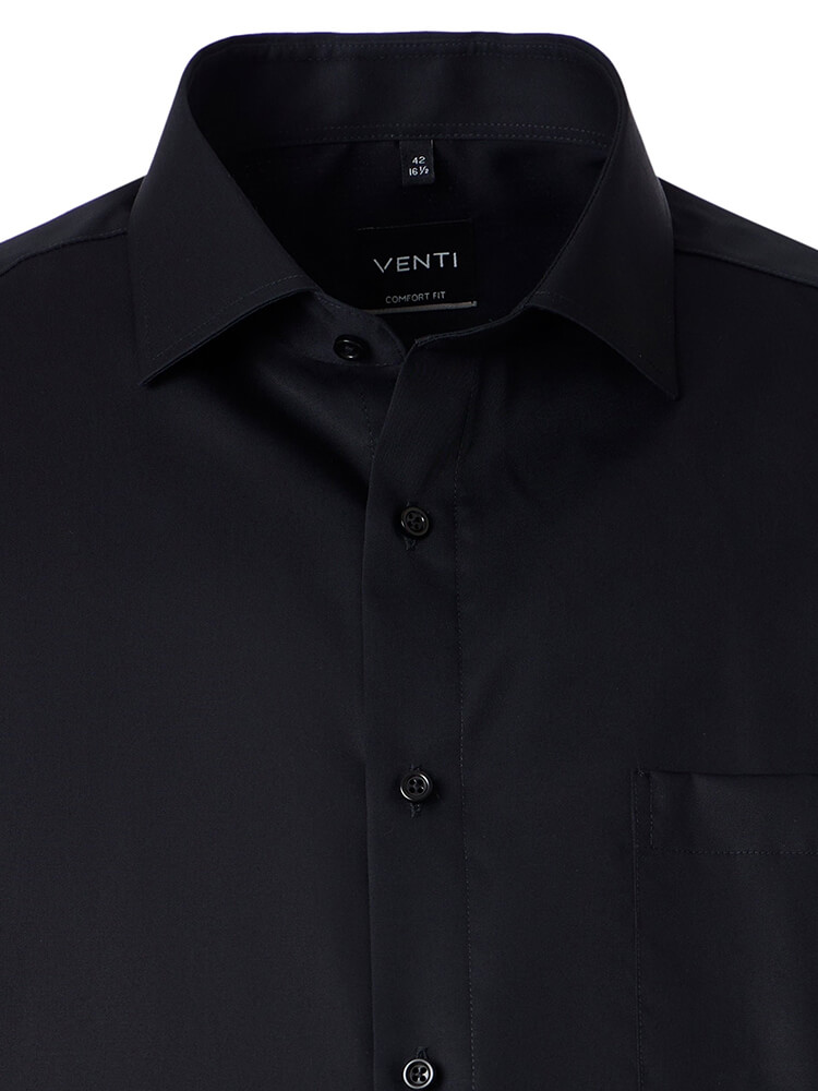 La camicia da ufficio comoda della collezione VENTI Comfort Fit rappresenta l'uomo colto e attento alla moda di oggi. Un taglio classico combinato con dettagli di prodotto alla moda promette un alto livello di comfort e rende questa camicia un maestro della combinazione. La camicia semplice de uomo del colore nero da uomo non dovrebbe mancare nel guardaroba di nessun uomo e può essere indossata con il collo elegante e intramontabile Kent per qualsiasi occasione e nella vita di tutti i giorni. Questa camicia da uomo VENTI Comfort Fit si presenta al meglio con una cravatta abbinata e un nodo di cravatta largo.