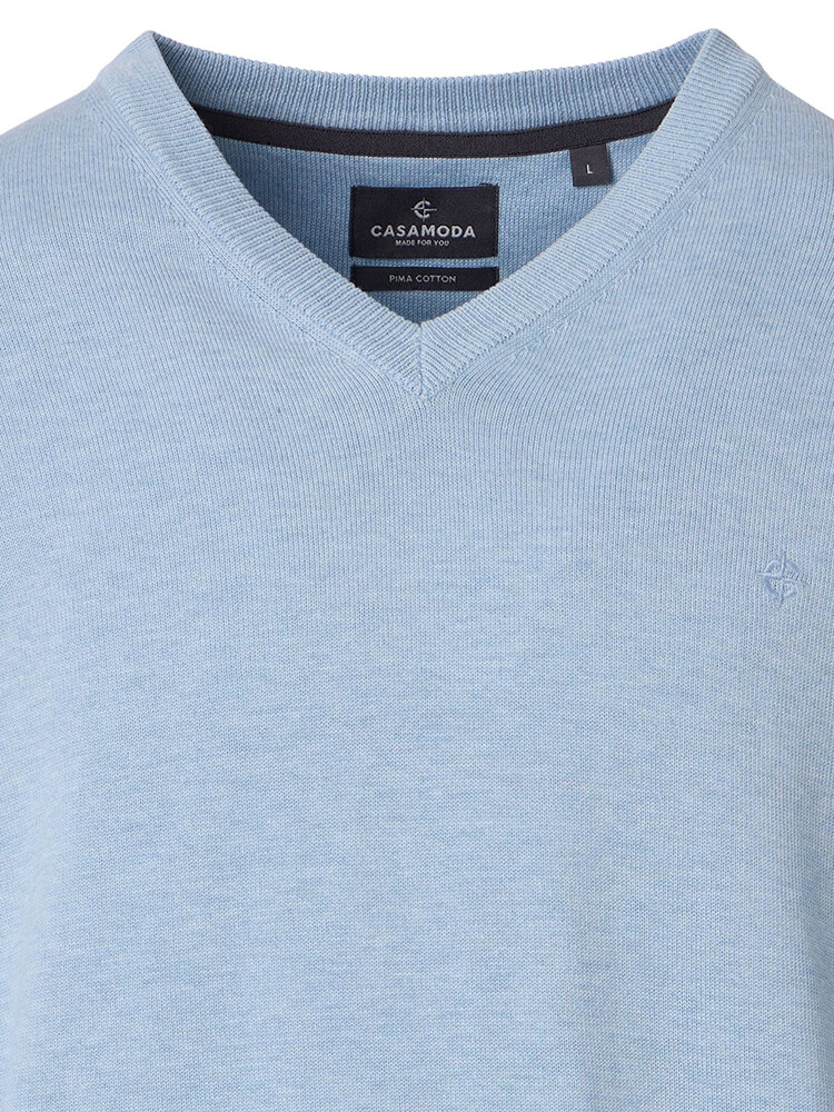 Qualunque sia la stagione, questo pullover a pullover a maglia CASAMODA regular fit estremamente elegante vi terrà comodi nelle serate o nei giorni più freschi. Questo pullover a maglia liscia in azzurro in 100% cotone con un elegante scollo a V completa il tuo guardaroba e sottolinea la tua silhouette maschile. Per il tempo libero o in ufficio, il fattore benessere è garantito con questo maglione leggermente aderente di CASAMODA.